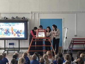 At West Earlham Junior school, headteacher Catrin Eyers invited the teachers to sit in on a Mandarin lesson with a year 5 class.  The children did a great job showing off their grasp of the Chinese language, something all children at this school have the opportunity to learn. Catrin and Jade were delighted when the group gifted a shadow theatre to each school for the staff and students to enjoy using!