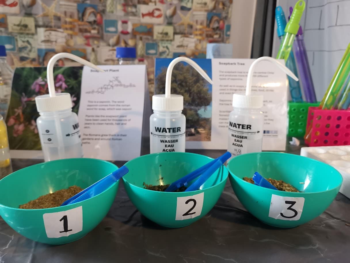 Finally in the bathroom we looked for chemical structures and explored plants that keep us clean, make bubbles and even protect us from infections.